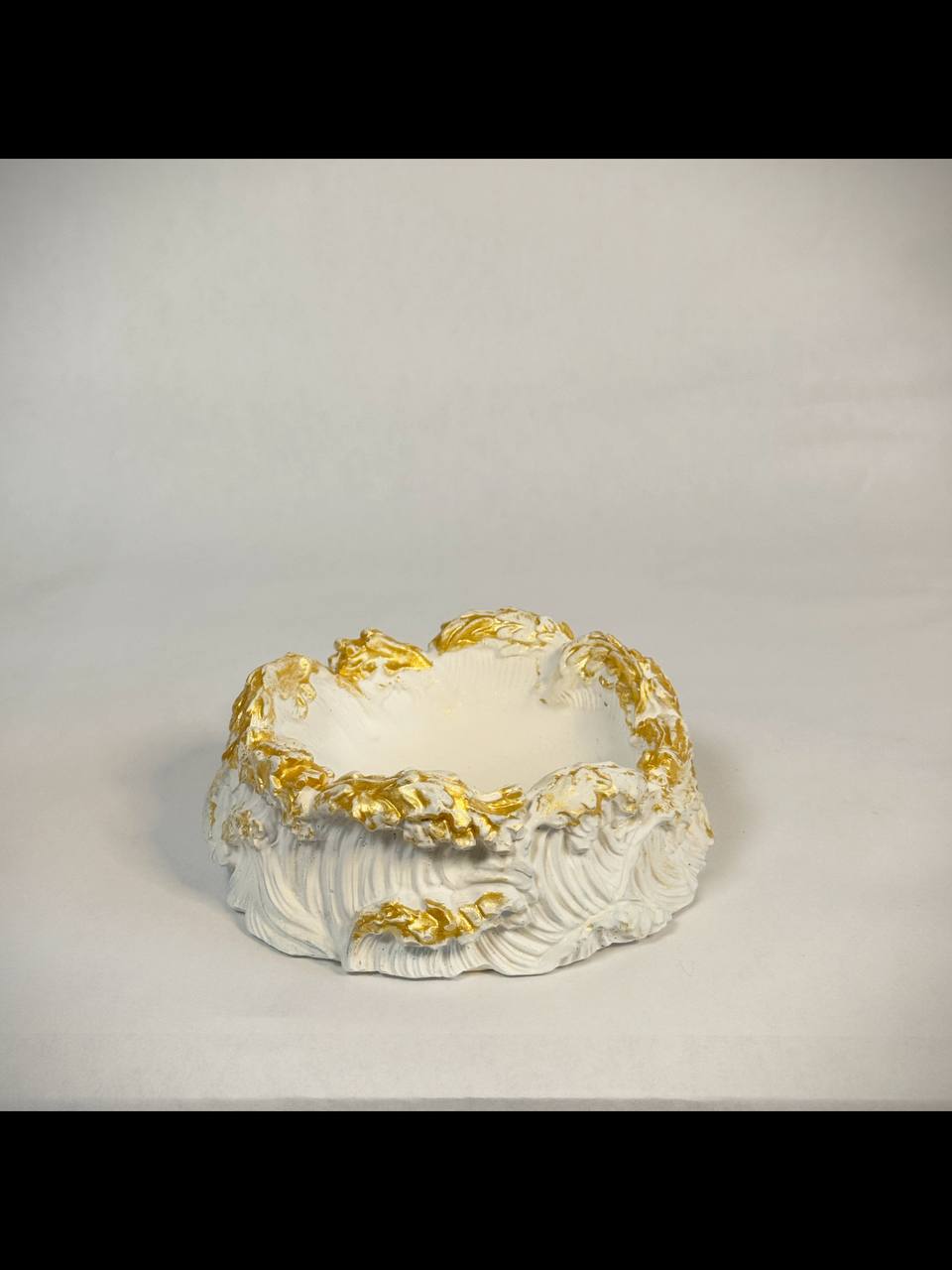 Cast from a premium, smooth stone composite. It feels cool to the touch and has a solid, luxurious weight, mimicking the durability of ceramic without the fragility.