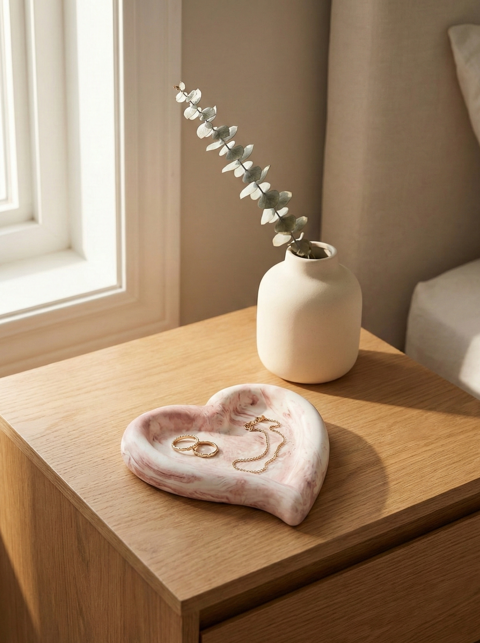 - One-of-a-Kind Detail: No two pieces are the same. Each dish features its own unique organic marbling, making it a truly personal addition to your nightstand, vanity, or coffee table.